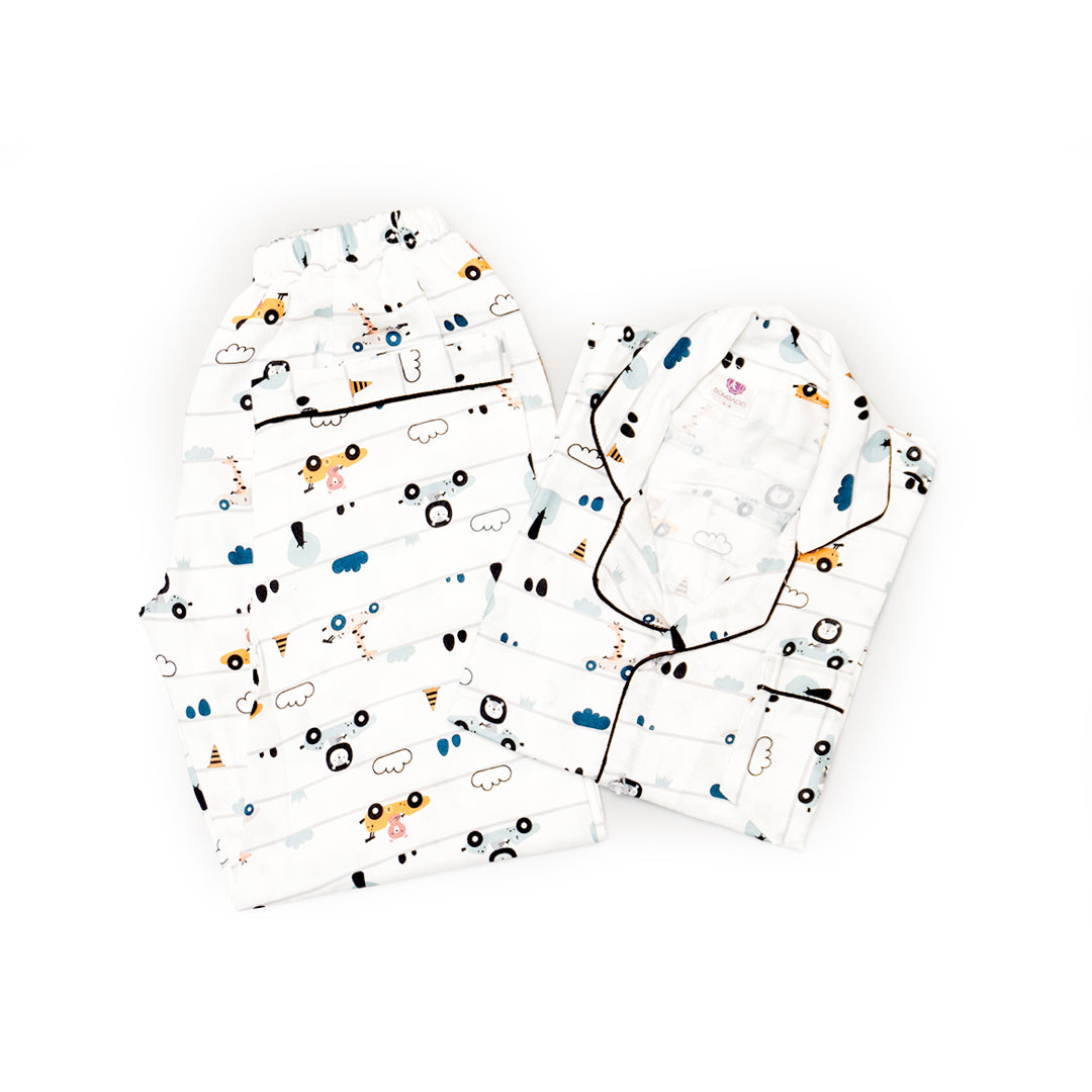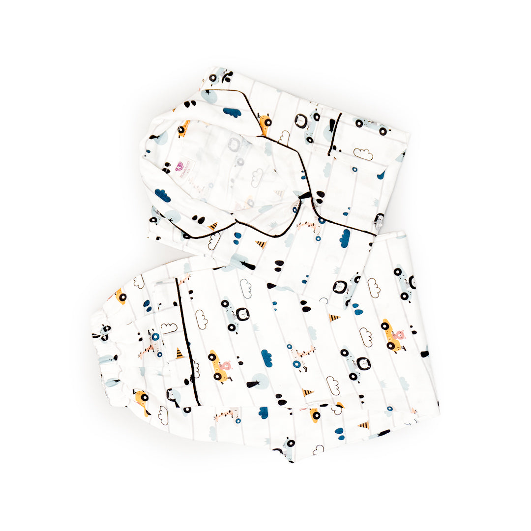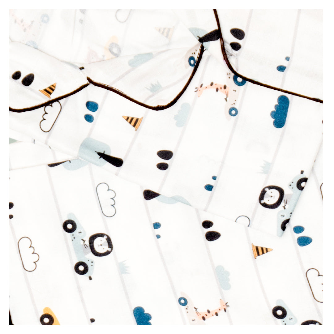This Colourful Kid Night Suit features a comfortable notched collar design, perfect for your child's bedtime routine. Crafted with soft, breathable fabric, it ensures a cozy and restful sleep. The vibrant colors add a playful touch, making it an ideal choice for kids who enjoy both comfort and style in their nightwear.