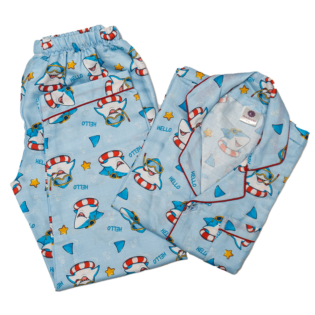 The Oceanic Oasis Night Suit is a thoughtfully designed pajama set for kids, combining comfort and style for a restful night's sleep. Crafted with soft, breathable fabric, it ensures gentle skin contact and optimal temperature regulation. Its playful ocean-inspired design sparks imagination while providing ease of movement, making it ideal for bedtime and lounging. Durable stitching and quality materials guarantee lasting wear, supporting your child’s comfort and relaxation every night.